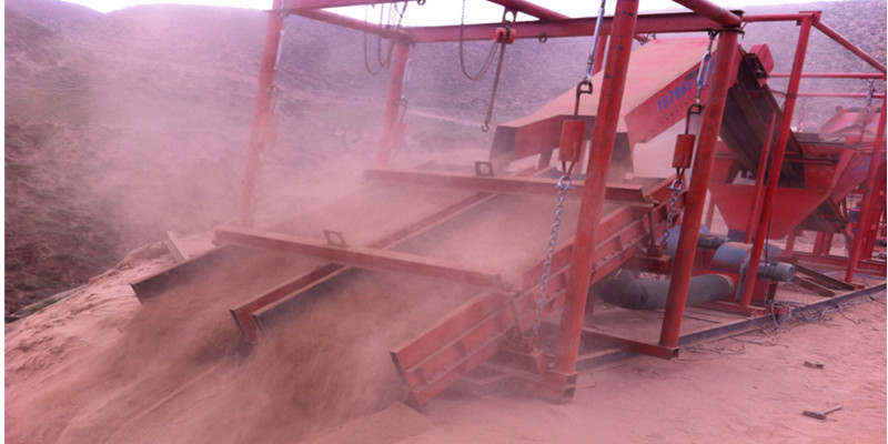 沙金干選機又稱為沙金風選機是由青州統一重工機械有限公司自主研發,是無水、缺水及大漠戈壁沙金礦之首選設備,擁有自主知識產權,該設備的問世徹底解決了沙金選取過程中所存在的無水或缺水的歷史性難題,填補了國際市場空白,其回收率可與沙金水套離心機(即尼爾森離心機)之媲美,面金70%,片金80—90%,顆粒金高達90%以上,最高選取粒度120目,富集比為4000:1。